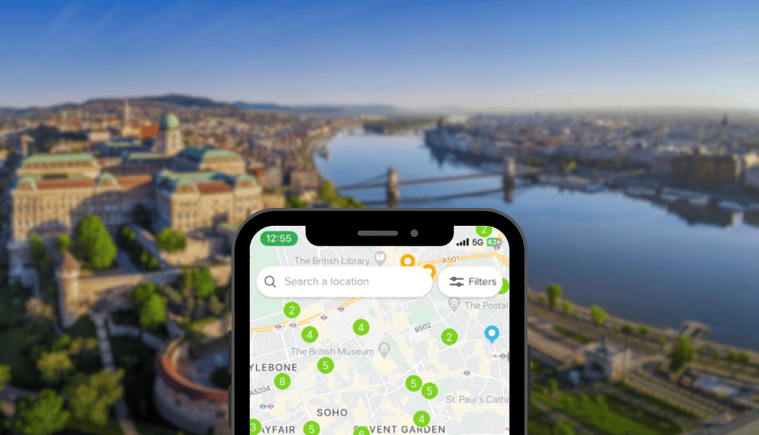 A Mobiliti töltőszigeteket mutatja meg számunkra, amelyek autópályák mentén és a belvárosokban találhatóak.