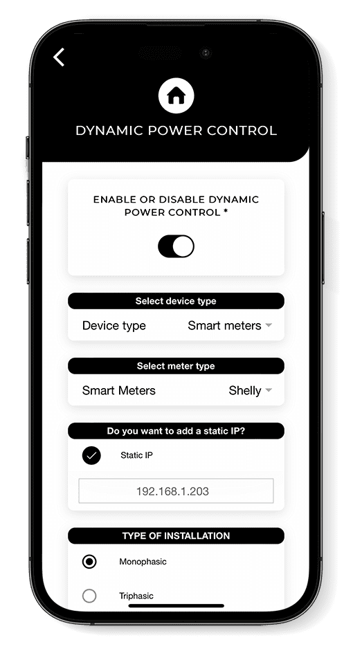 Élvezd a V2C Cloud alkalmazás minden előnyét WiFi-n vagy Bluetooth-on keresztül: irányítsd a töltést, ellenőrizd a statisztikákat, és ütemezd a töltést igényeid szerint.